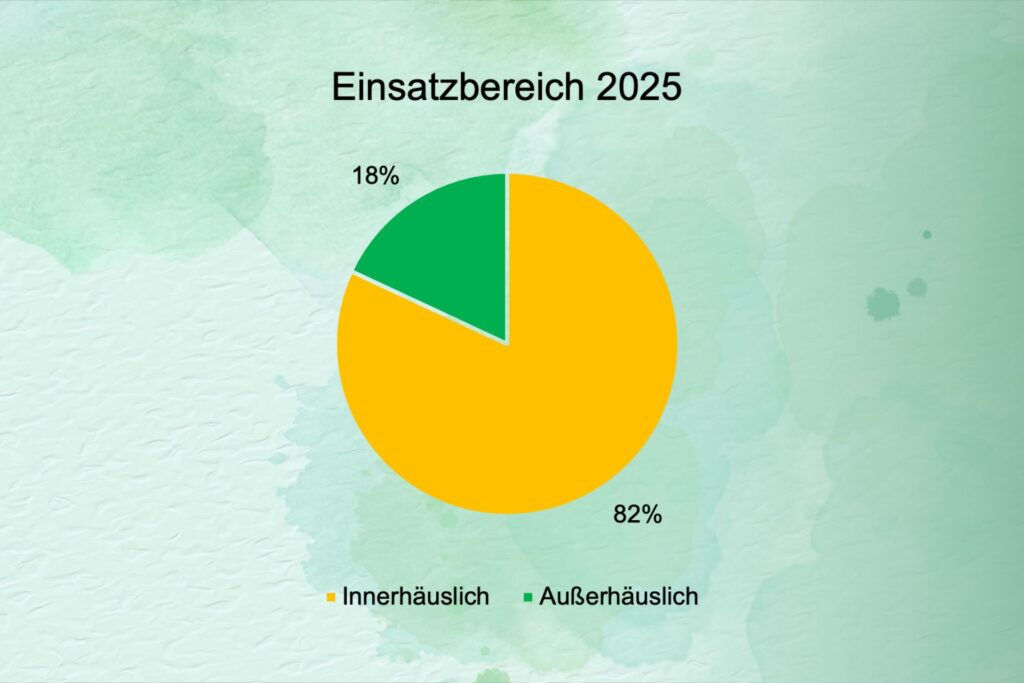 Innerhäuslich: 73 % – Die große Mehrheit der Einsätze fand in privaten, geschützten Räumen wie Wohnungen oder Pflegeeinrichtungen statt.